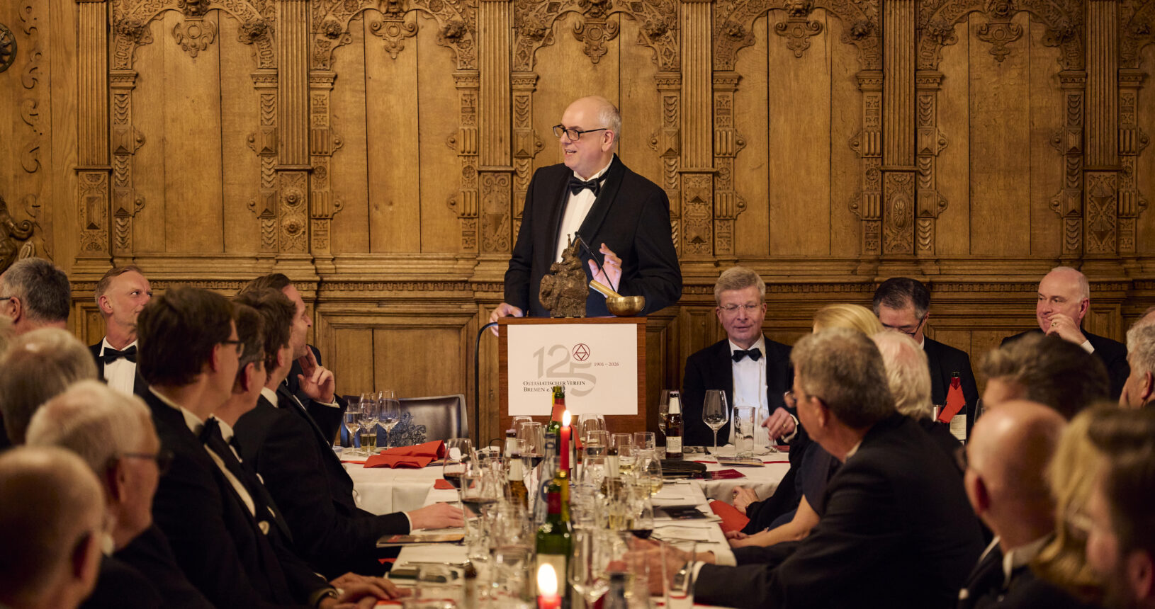 Anlässlich des 50-jährigen Bestehens unseres Vereins wechselten wir deshalb 1951 erstmals in die Obere Rathaushalle des Bremer Rathauses von 1405. Seitdem feiern wir mit etwa 400 Personen – Mitglieder, asiatische Botschafter, Ehrengäste aus aller Welt sowie Vertreter aus Politik, Kultur und Wirtschaft – unseren Vereinsgeburtstag und sammeln auf diese Weise Spendengelder für unsere gemeinnützigen Projekte. Das Stiftungsfest des OAV gehört neben der Eiswette und der Schaffermahlzeit zum „Dreigestirn“ der Traditionsveranstaltungen in Bremen.